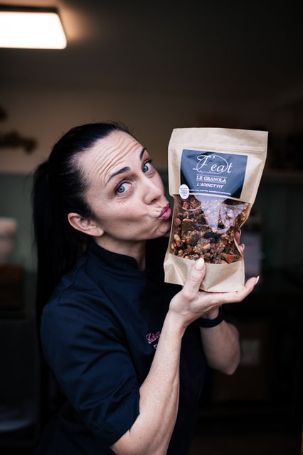 Passionnée de cuisine, j'ai créé des recettes de Granola saines, gourmandes, vegan, à indice glycémique bas, sans additif, ni conservateur, afin de couvrir nos apports journaliers tout en gourmandise. Artisanal, fait maison et fabriqué à partir de 80% de produits bio dans mon laboratoire, ce GRANOLA va vous régaler. Idéal au petit déjeuner et/ou en collation, c'est le moment plaisir sans culpabilité.